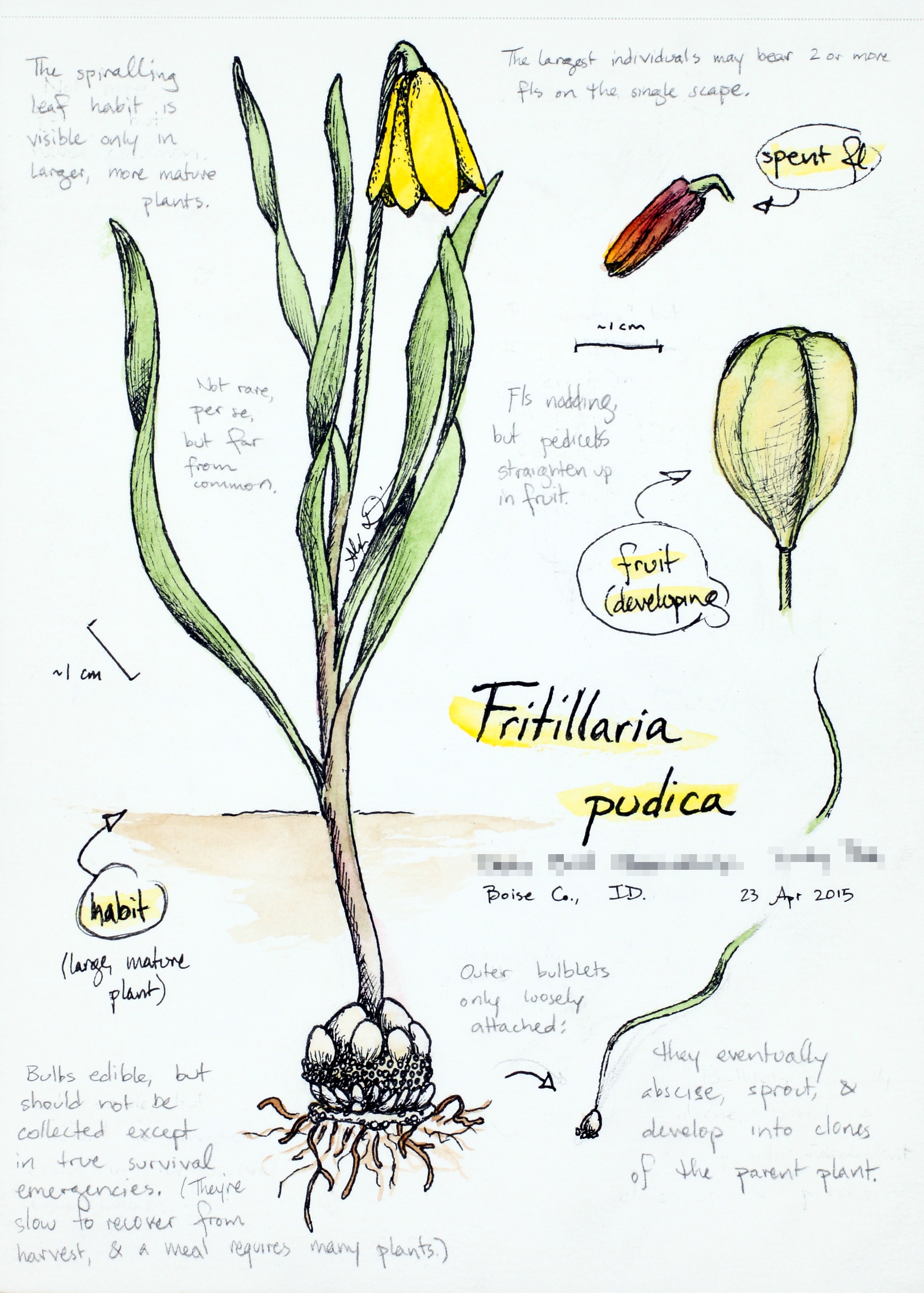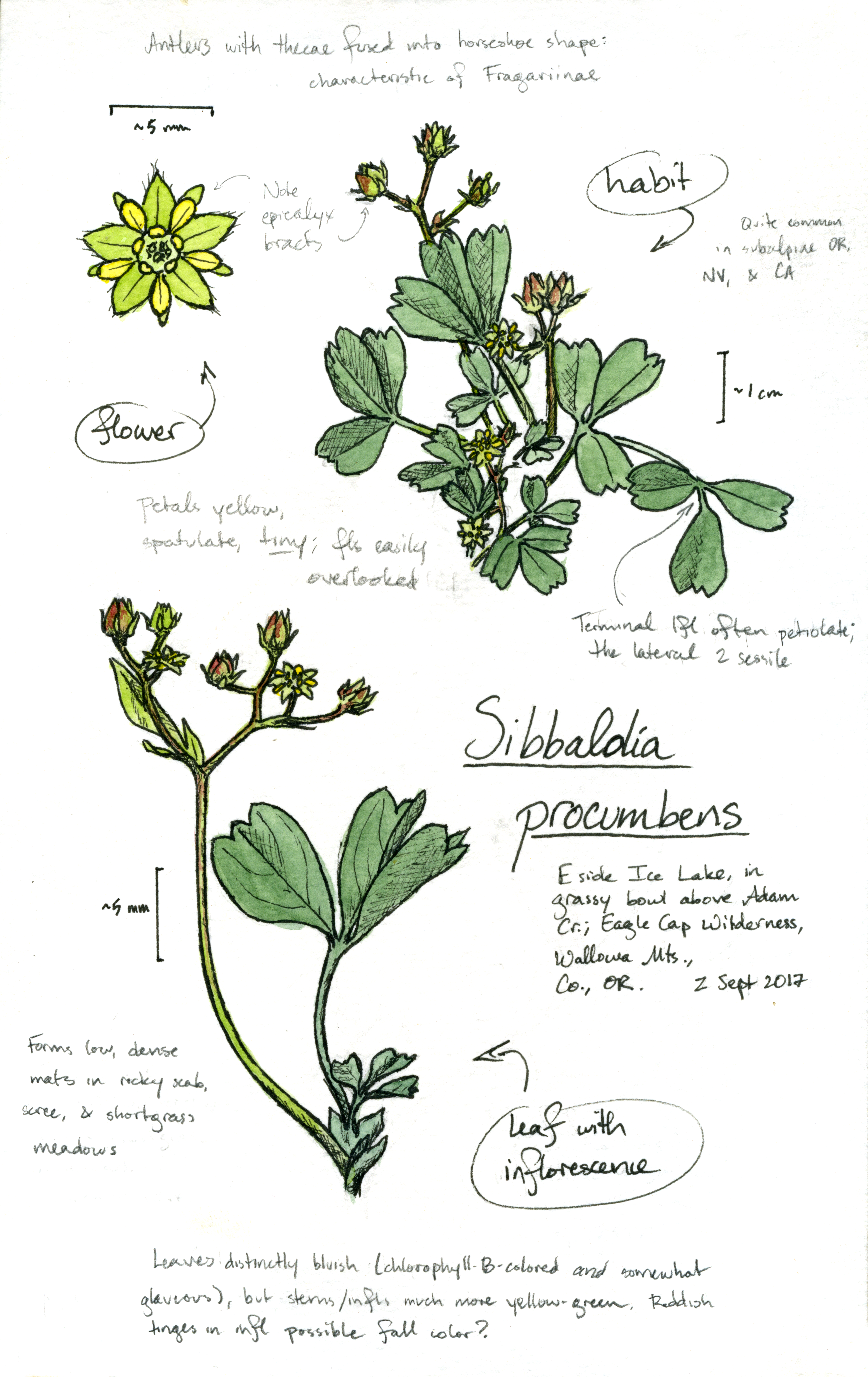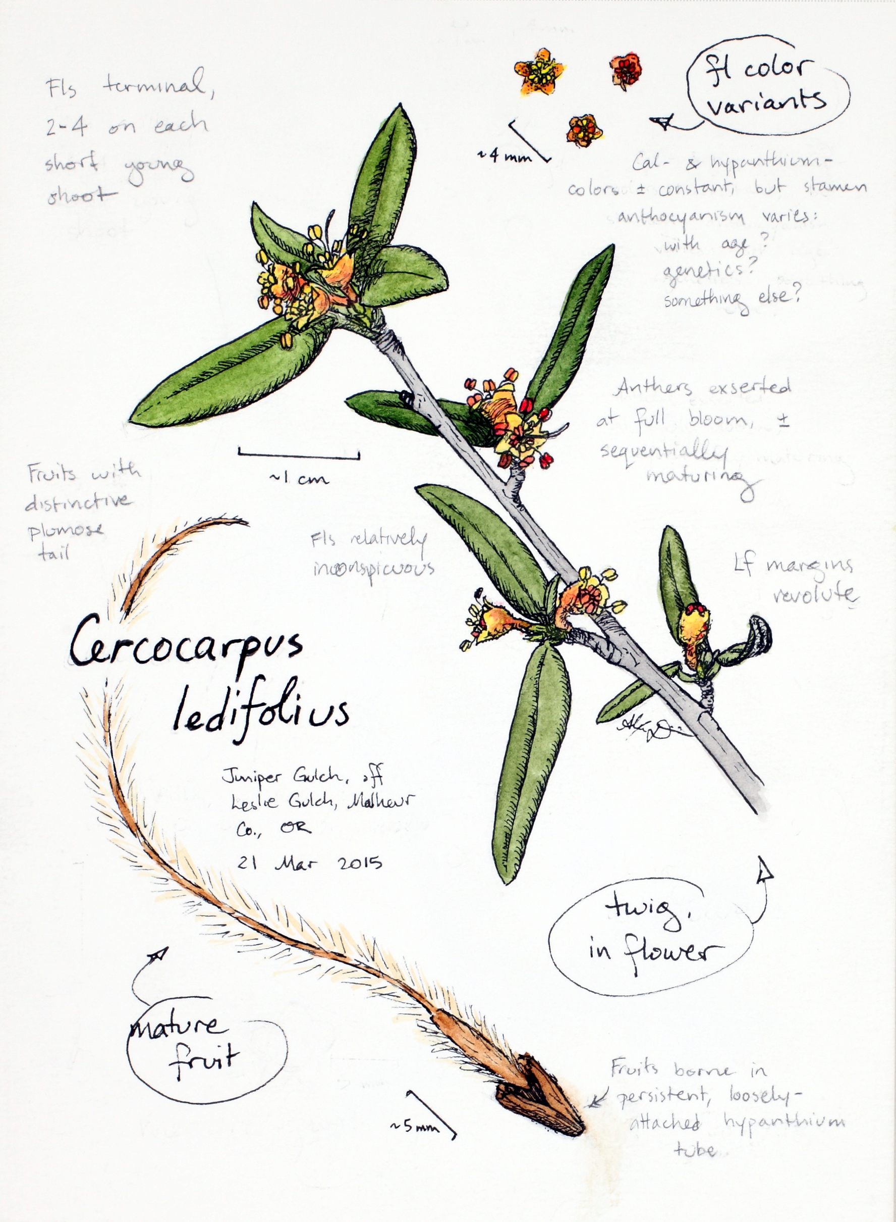 My technical botanical illustrations have been published as part of five taxon descriptions so far: Potentilla norrelmukana, Potentilla versicolor var. darrachii, Potentilla hookeriana var. charletii, Monardella angustifolia, and Christopheria xantha. I also use my art as an outreach medium. In the field, I often pause to make pen-and-ink/watercolor sketches of native plants; the results are scientifically accurate and captioned in detail. By selling notecards and matted prints of the drawings (primarily on Etsy), I bring the beauty and wonder of our shared natural heritage to people who might not otherwise appreciate it.