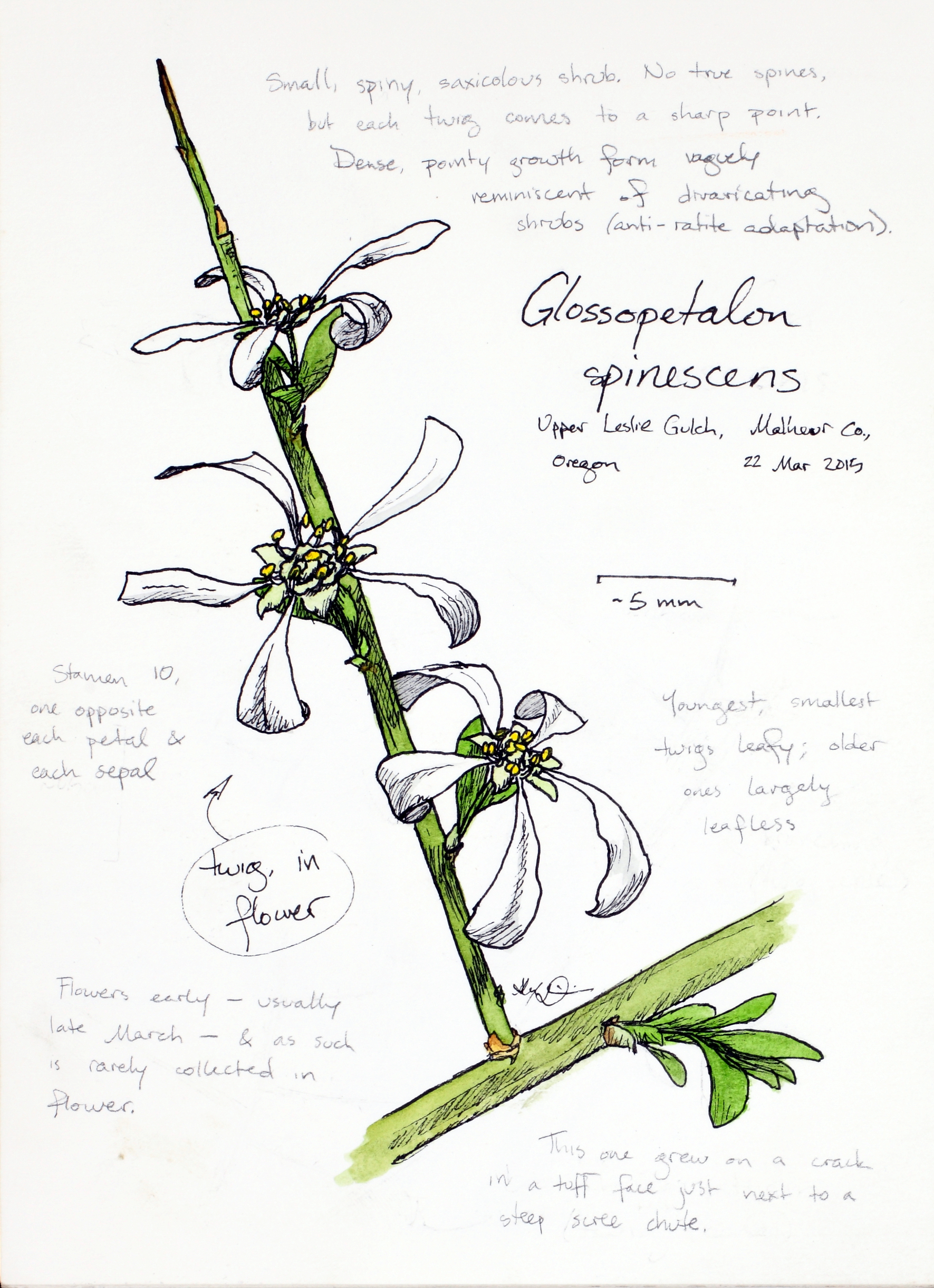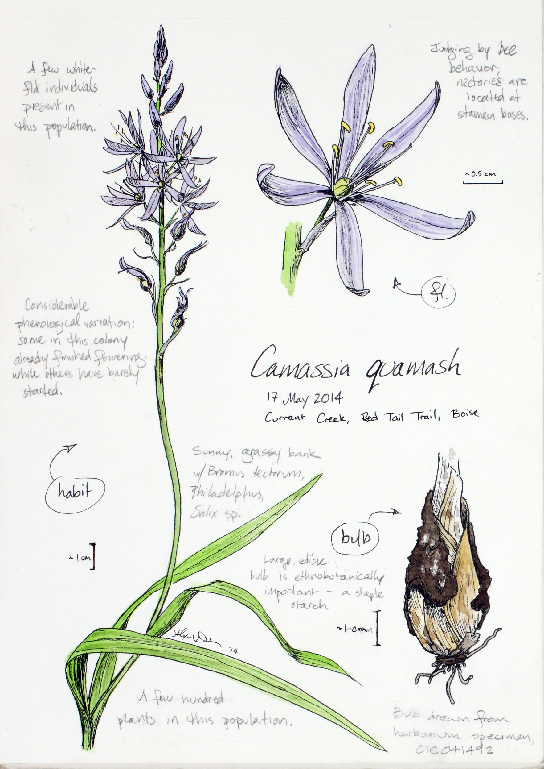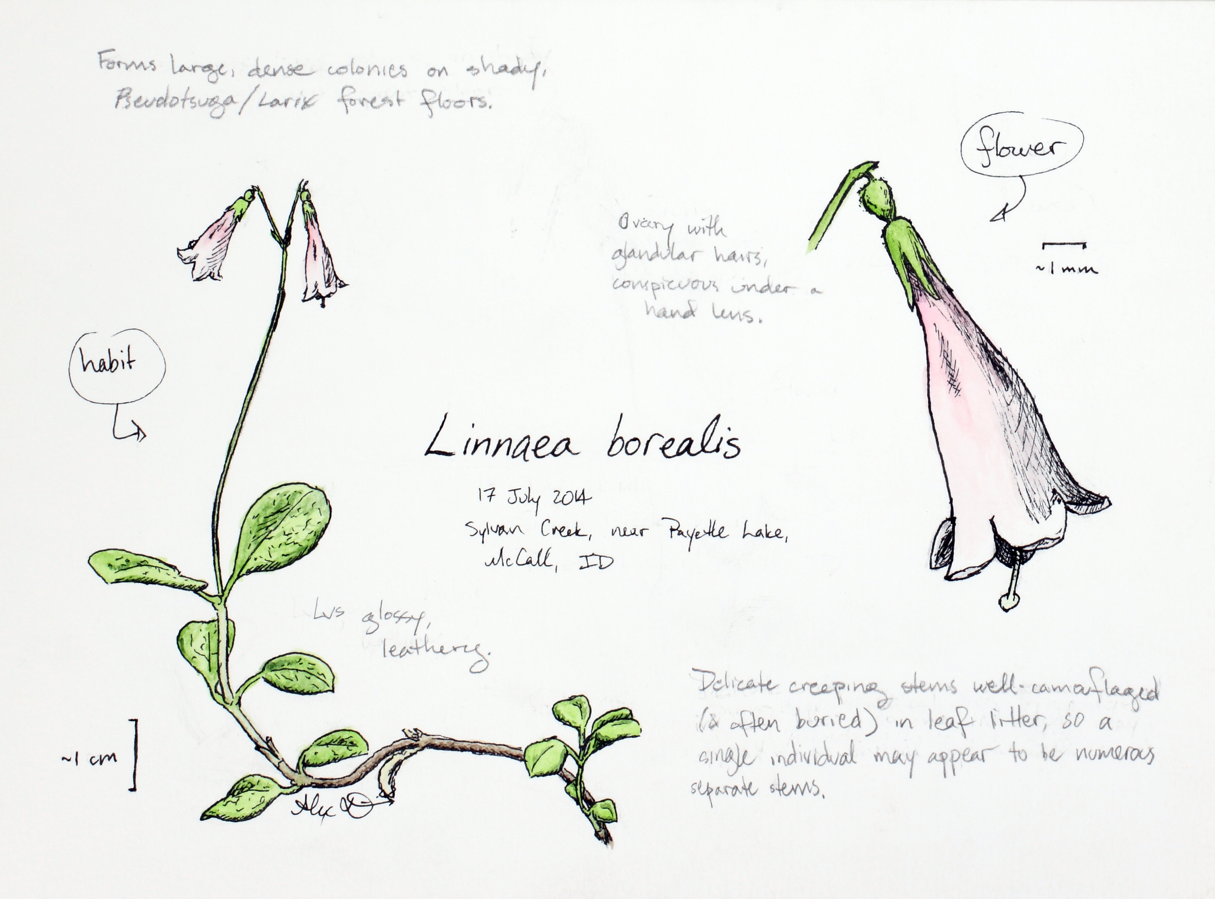 My technical botanical illustrations have been published as part of five taxon descriptions so far: Potentilla norrelmukana, Potentilla versicolor var. darrachii, Potentilla hookeriana var. charletii, Monardella angustifolia, and Christopheria xantha. I also use my art as an outreach medium. In the field, I often pause to make pen-and-ink/watercolor sketches of native plants; the results are scientifically accurate and captioned in detail. By selling notecards and matted prints of the drawings (primarily on Etsy), I bring the beauty and wonder of our shared natural heritage to people who might not otherwise appreciate it.